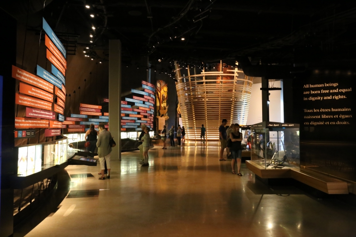 Inside, multi-sensory exhibits explore human rights stories about Canada and across the world. I was amazed by the museums thoughtful design (it appears on the city skyline like a mighty fortress, with glass towers shooting toward the heavens), wheelchair accessibility (you’ll find no stairs here, just one kilometre of scenic, winding ramp and jaw-dropping video installations throughout which include sign language for the deaf) and world class interactive exhibits (each gallery includes motion sensor activated stories which allow you to explore human rights issues such as race, genocide, refugee status, gender inequality, indigenous rights, LGBT struggles, etc). One can’t help but feel emotional here, but a Canadian will undoubtedly walk out of the place having reflected on how lucky they are to be adventuring through a country that is so brave and free.